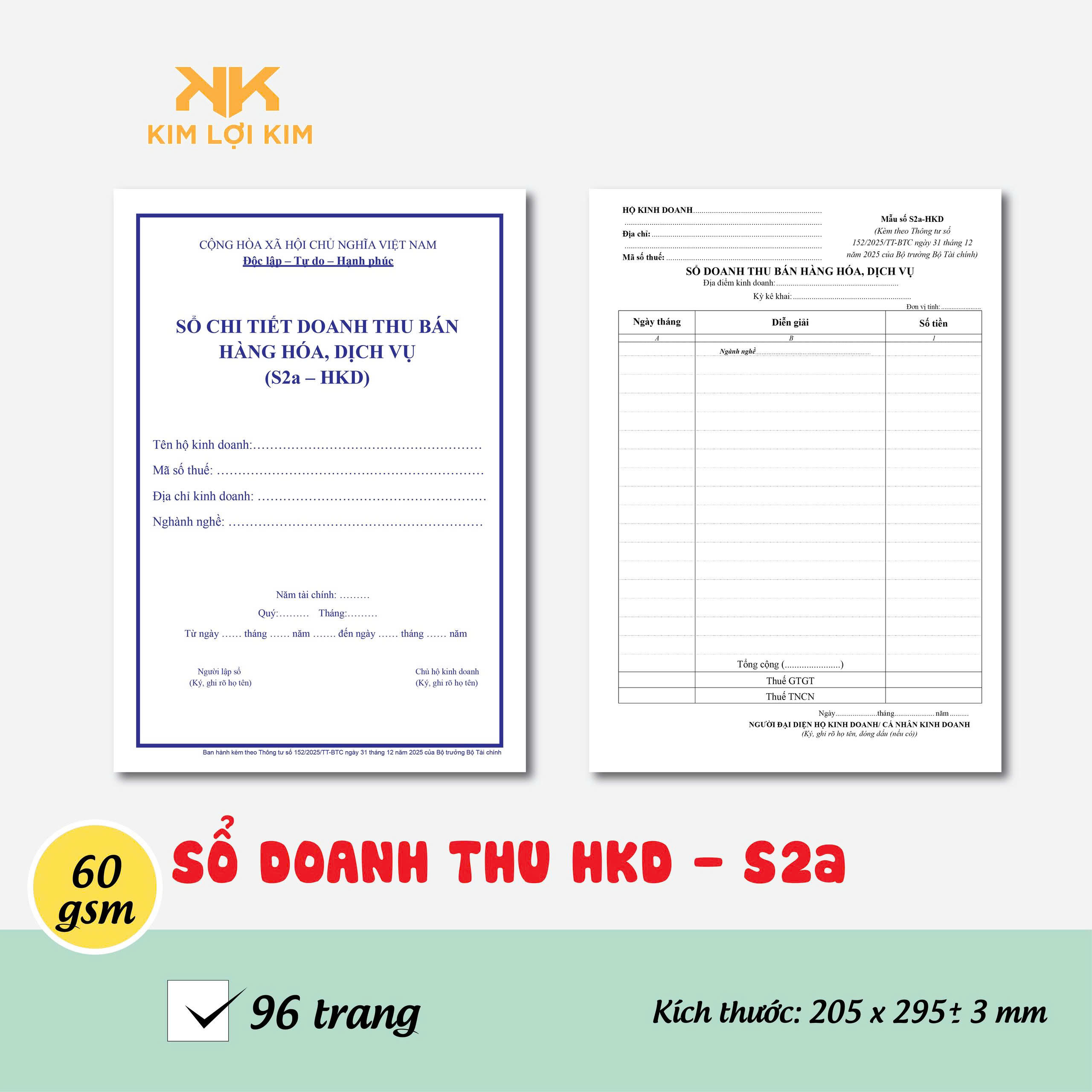 – Lưu trữ Doanh thu bán hàng hóa, dịch vụ mẫu S2A-HKD (Theo TT số 152/2025/TT-BTC ngày 31 tháng 12 năm 2025 của Bộ trưởng Bộ Tài chính)