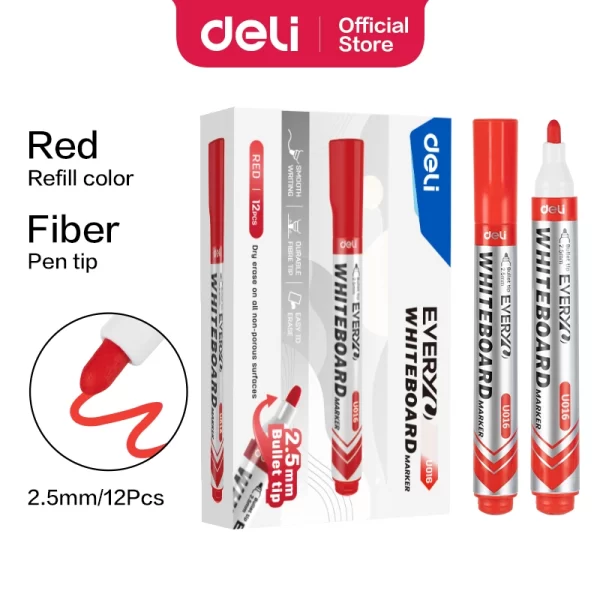 Tên Sản Phẩm: Viết Lông Bảng Deli 016 ĐỎ 12C/H